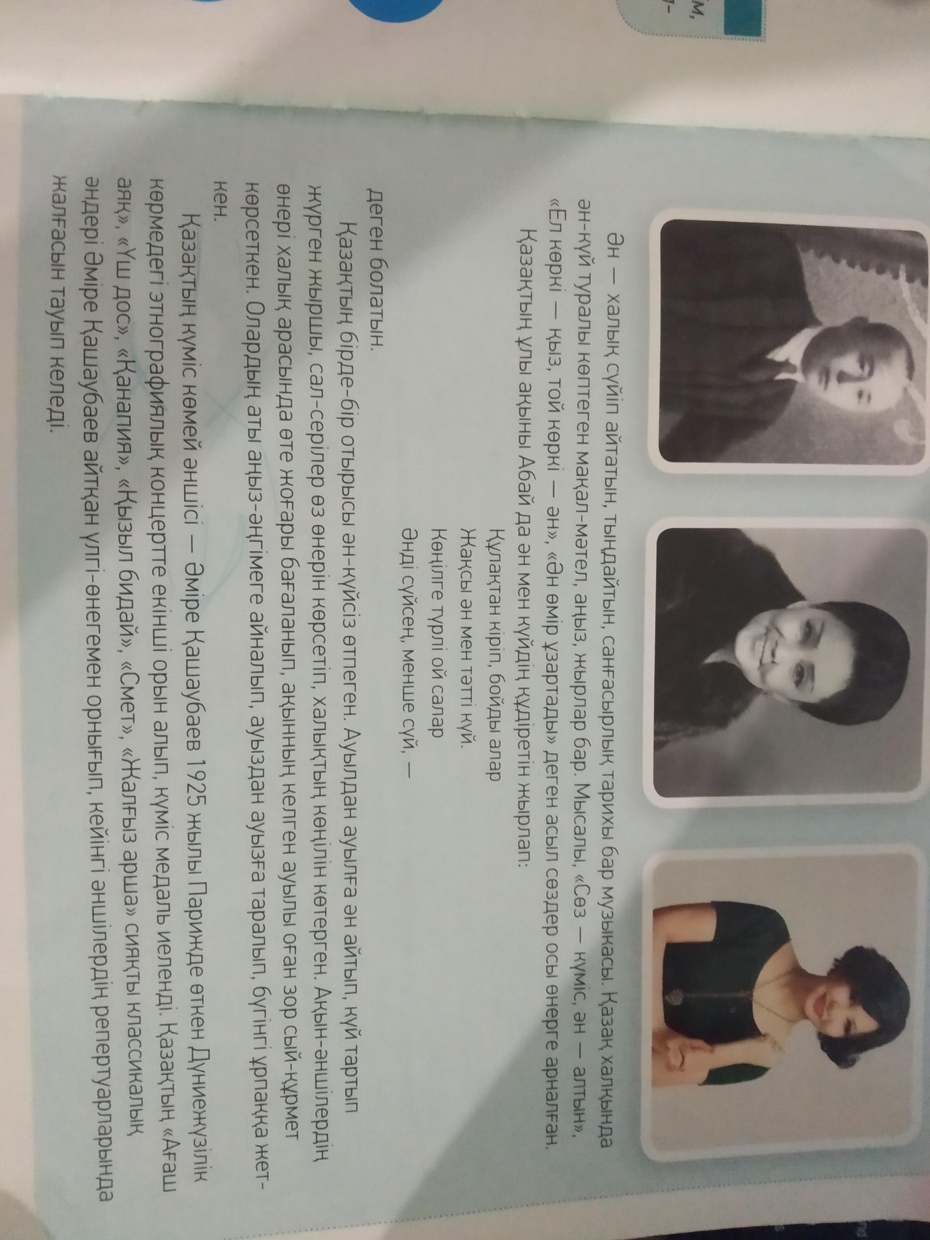 Менің ойымша қазақтың ән өнері ол біздің асыл қазынамыз . Себебі мен оны маңызды салаларының бірі деп түсінемін. Оны мен халық әндері мен дәлелдей аламын. Осыған байланысты ән саласы дамып, онымен бірге Қазақстан да дамыса деп ойлаймын.