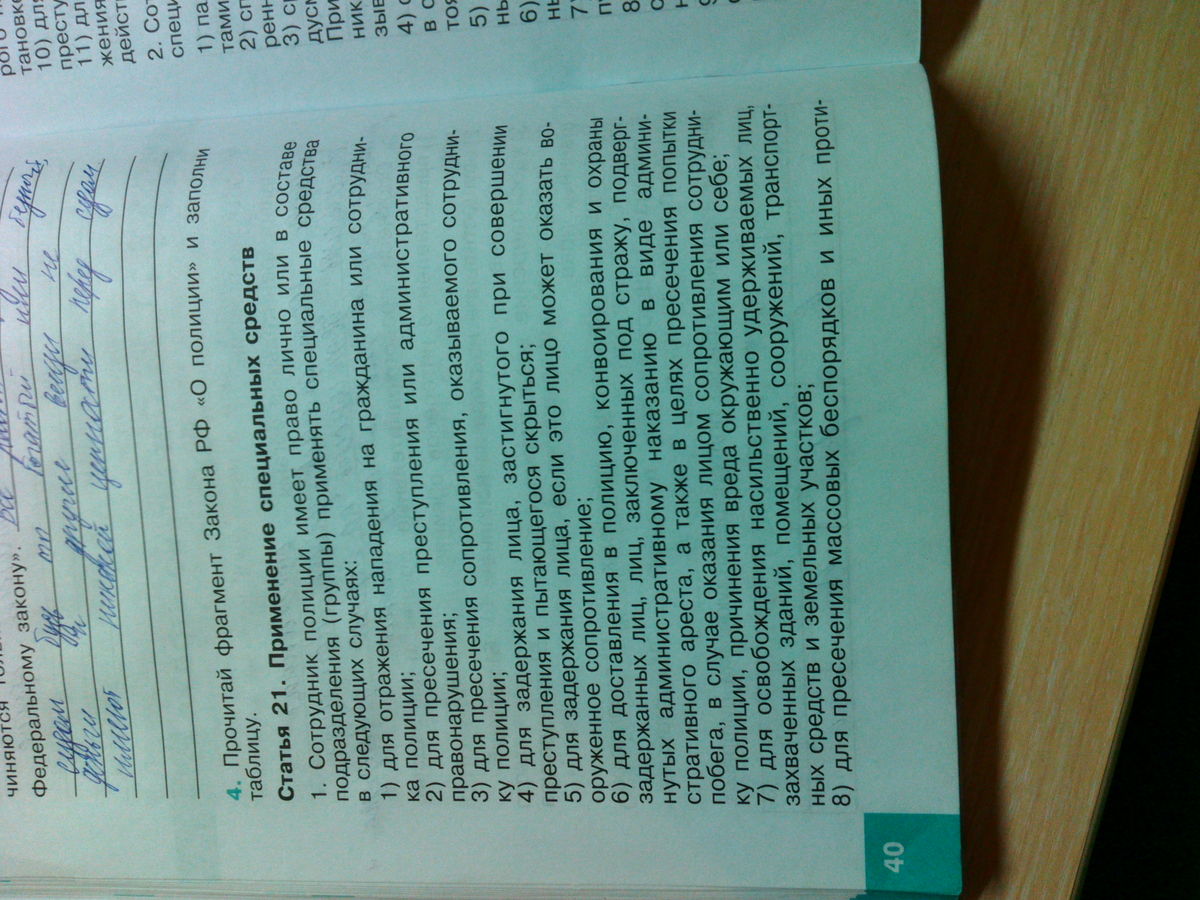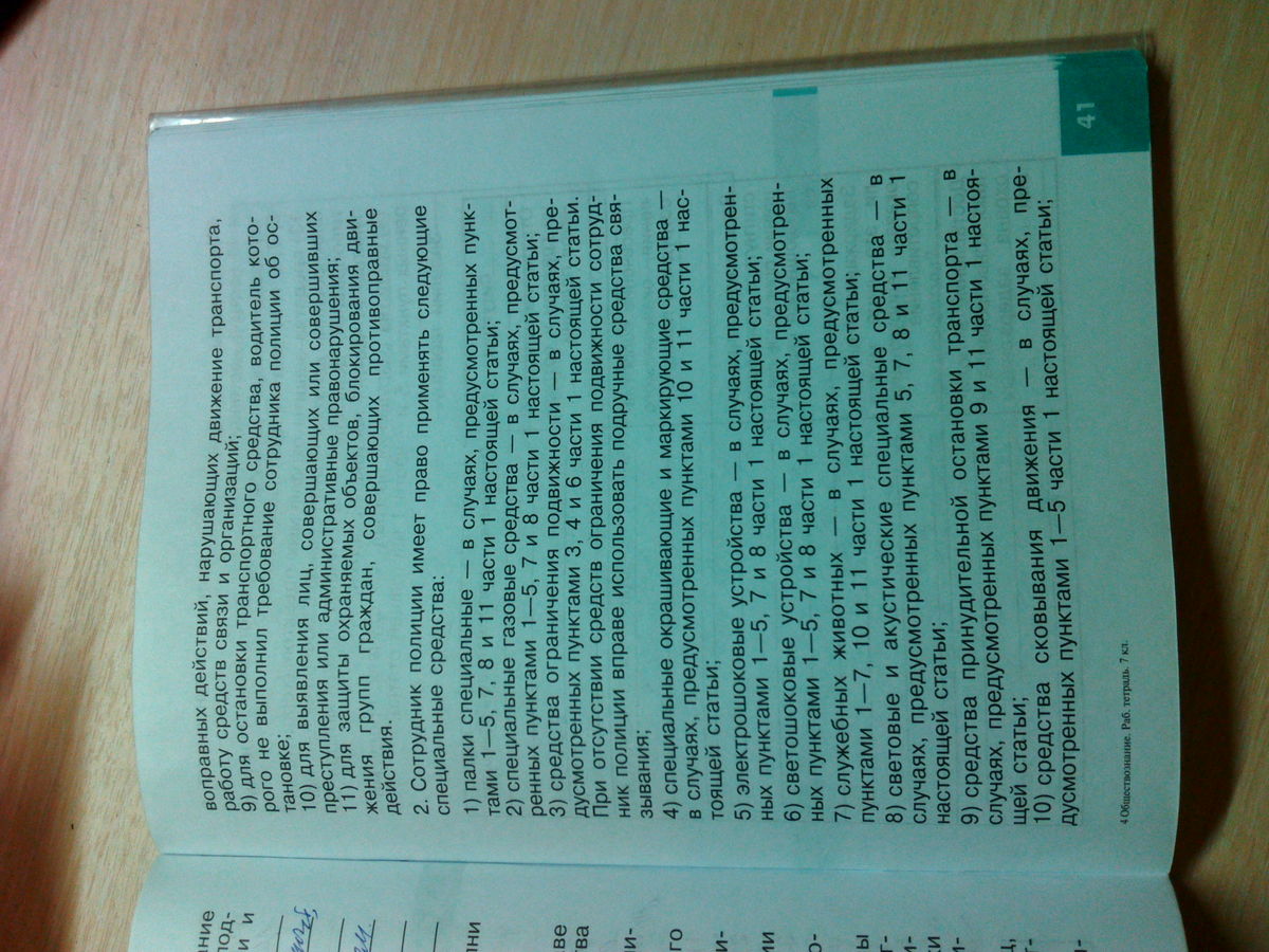 Специальные палки, специальные газовые средства, электрошоковые устройства, светошоковые устройства, служебных животных, средства сковывающих движения.