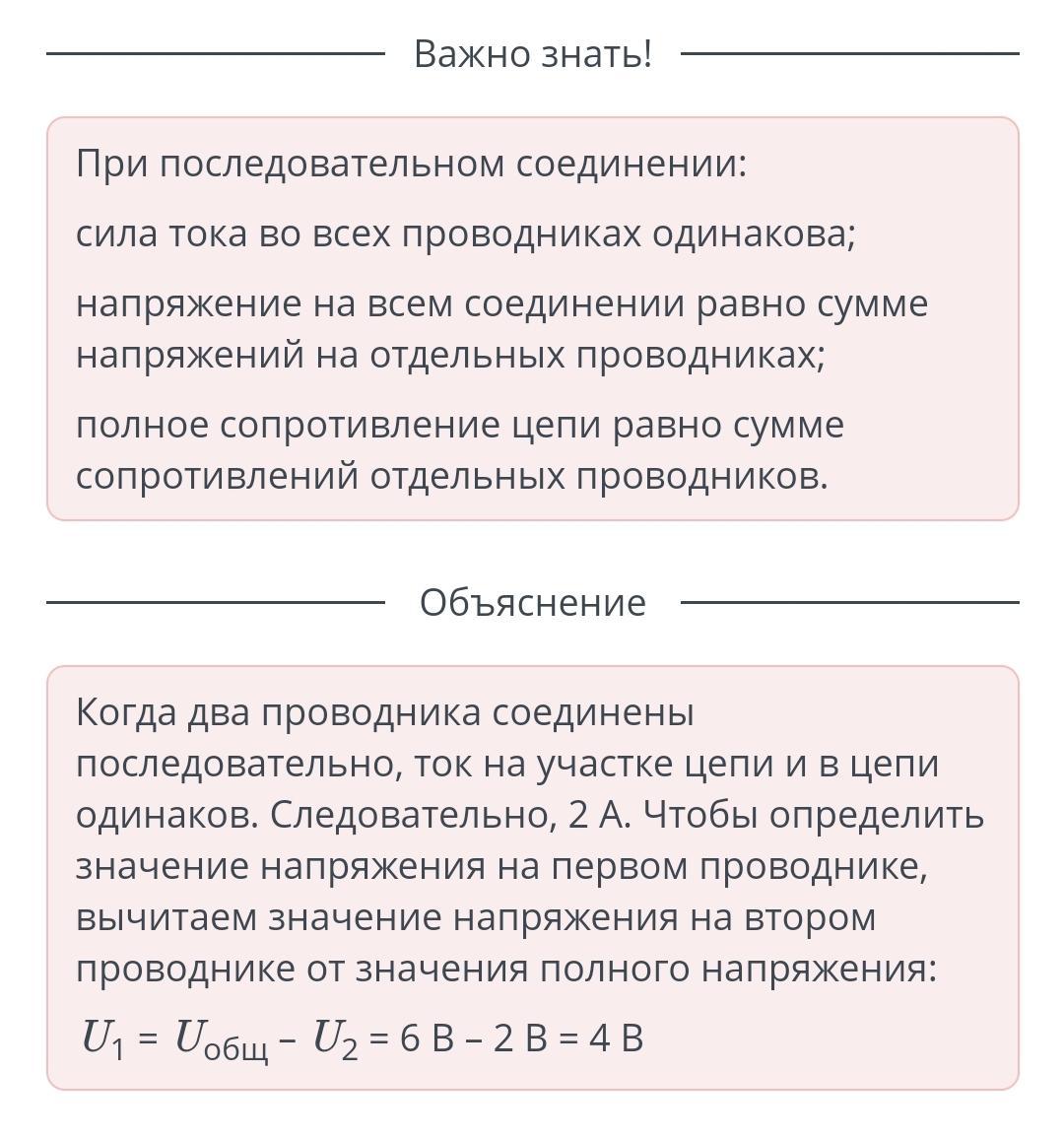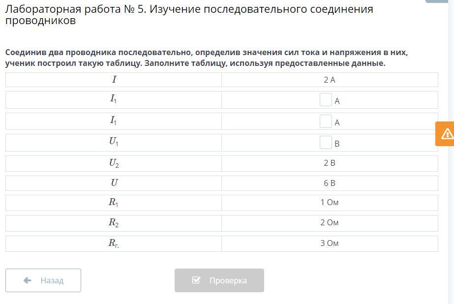 Соединив два проводника последовательно, определив значения сил тока и напряжения в них, ученик построил такую таблицу. Заполните таблицу, используя предоставленные данные.
