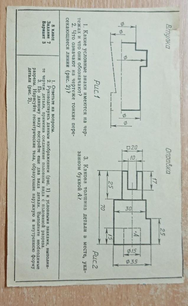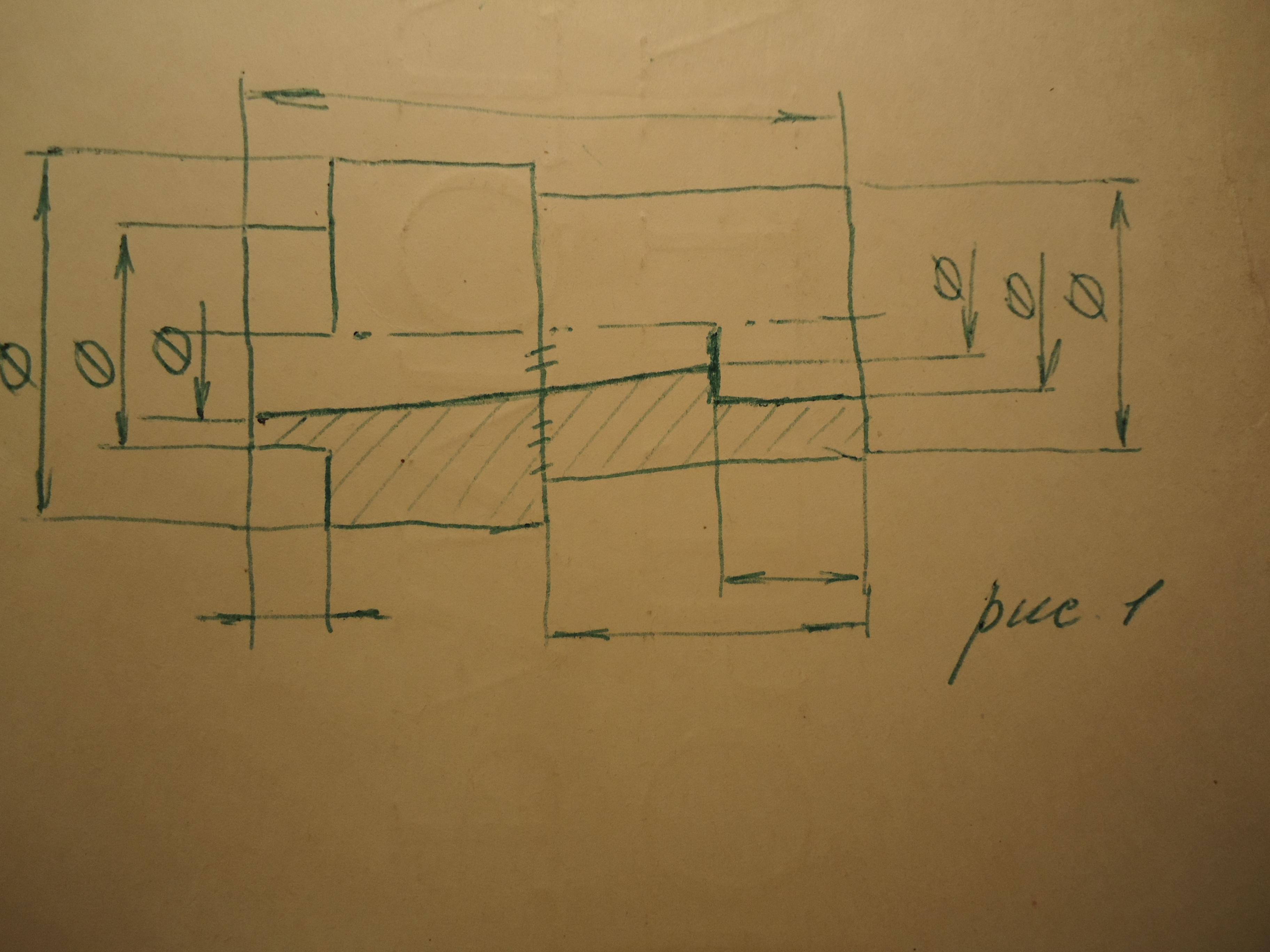 Эскиз чертежа детали с рис. 1 с соединением половины вида и половины разреза, выполненный от руки, см. на фото.