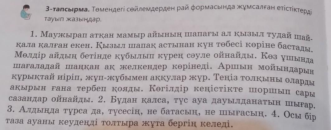 3-тапсырма. Төмендегі сөйлемдерден рай формасында жұмсалған етістіктерді