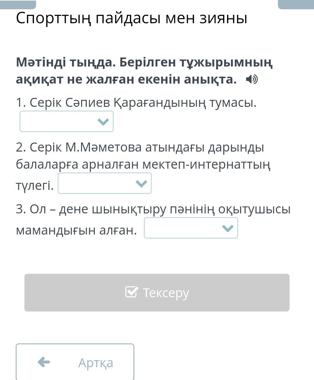КРЧ ПИШИТЕ ПРОСТО nursabak и там заходите и там будут написанны классы выбераете любой класс напримаер типо 7 или 8 и так вот потом вибираете урок нажимаете на него и выбераете тему (тақырып)