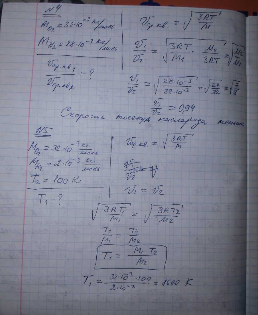 5.При какой температуре средняя квадратичная скорость молекул кислорода равна средней квадратичной скорости молекул водорода взятого при температуре 100К.