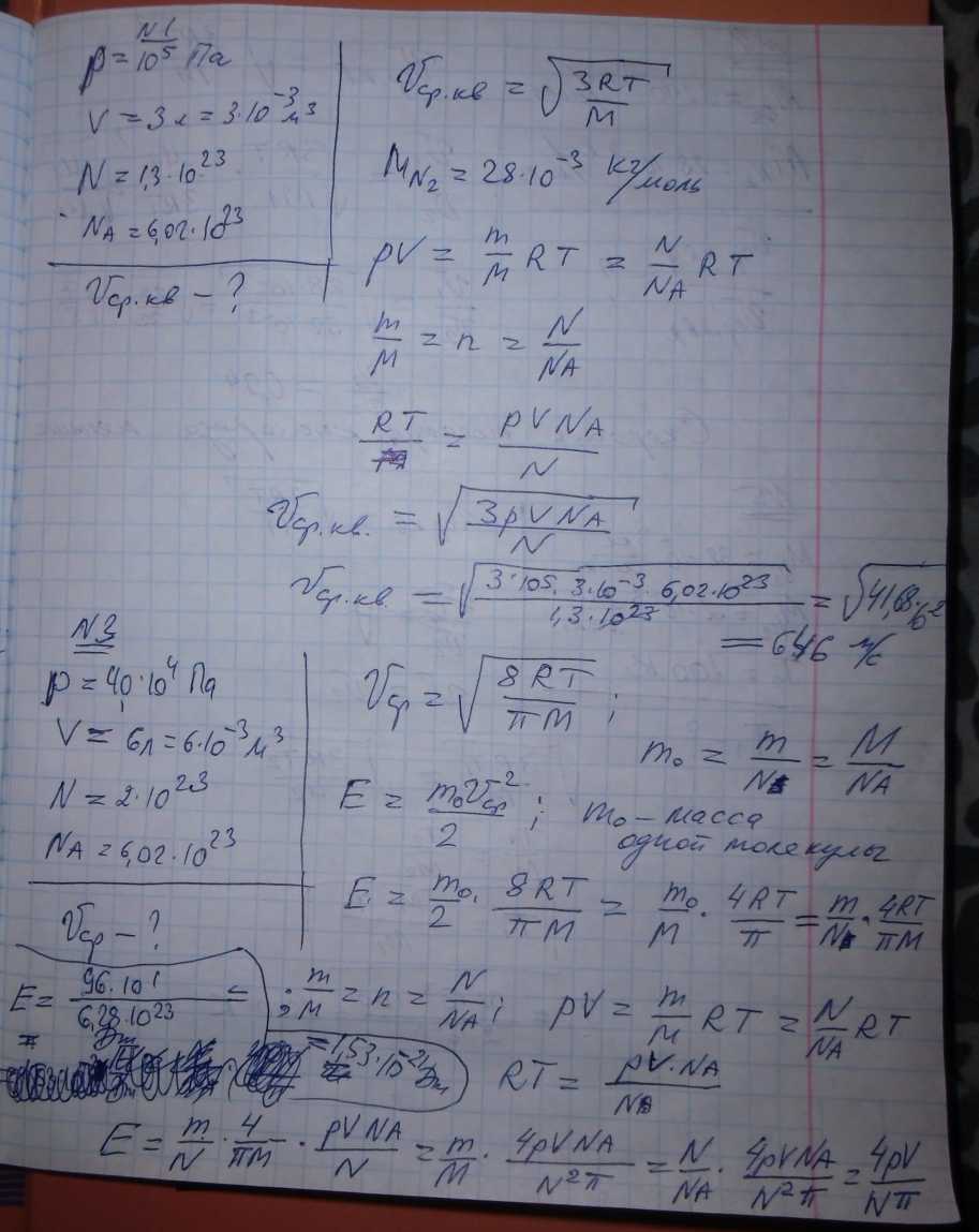 1.Оцените среднее квадратичную скорость молекул азота, если его плотность 100 кПа ,а в объёме 3 литра содержится 1,3*10^23 молекул (N).