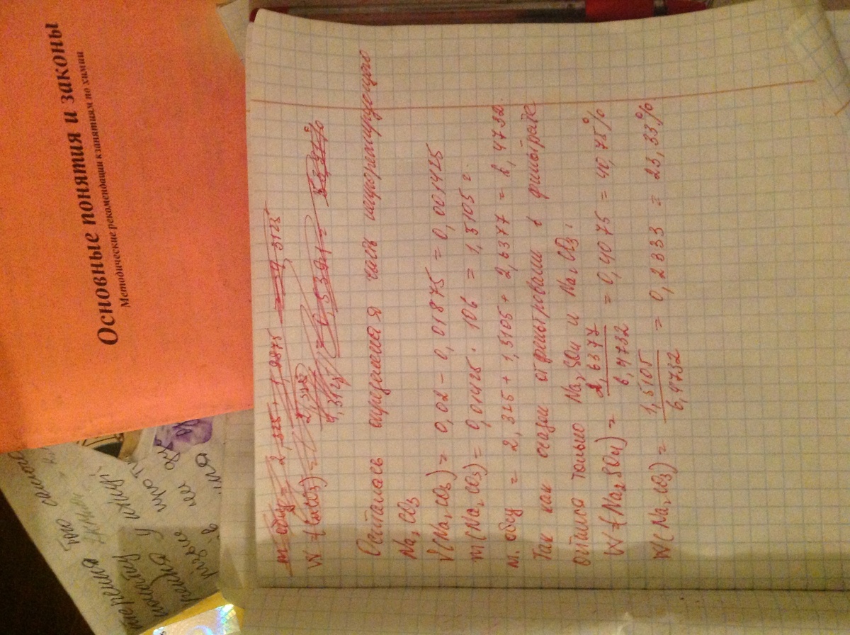 т.о. в растворе останется 0,0445 моль Na2CO3, 0,025 моль NaHCO3 иNa2SO4