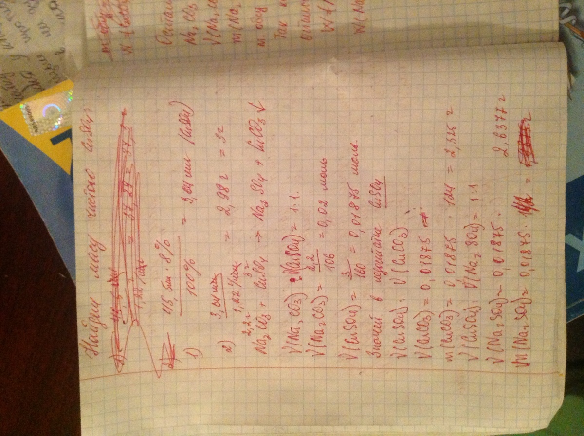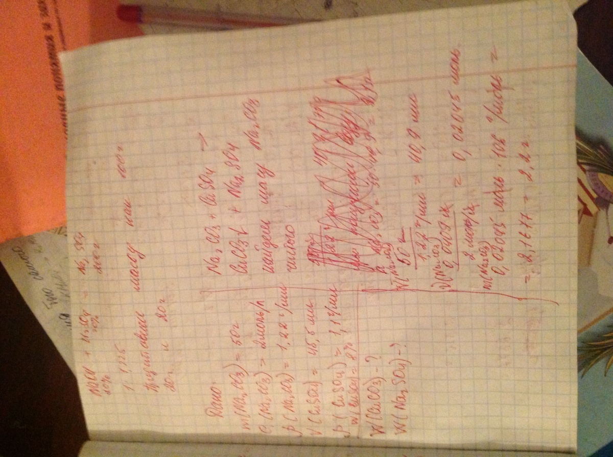 К 50 г раствора Na2CO3 с концентрацией 2 моль/л и плотностью = 1.22 г/мл добавили 45.5 мл 8% раствора CuSO4 с плотностью 1.1 г/мл. Выпавший осадок отфильтровали. Вычислить массовые доли в полученном фильтрате.