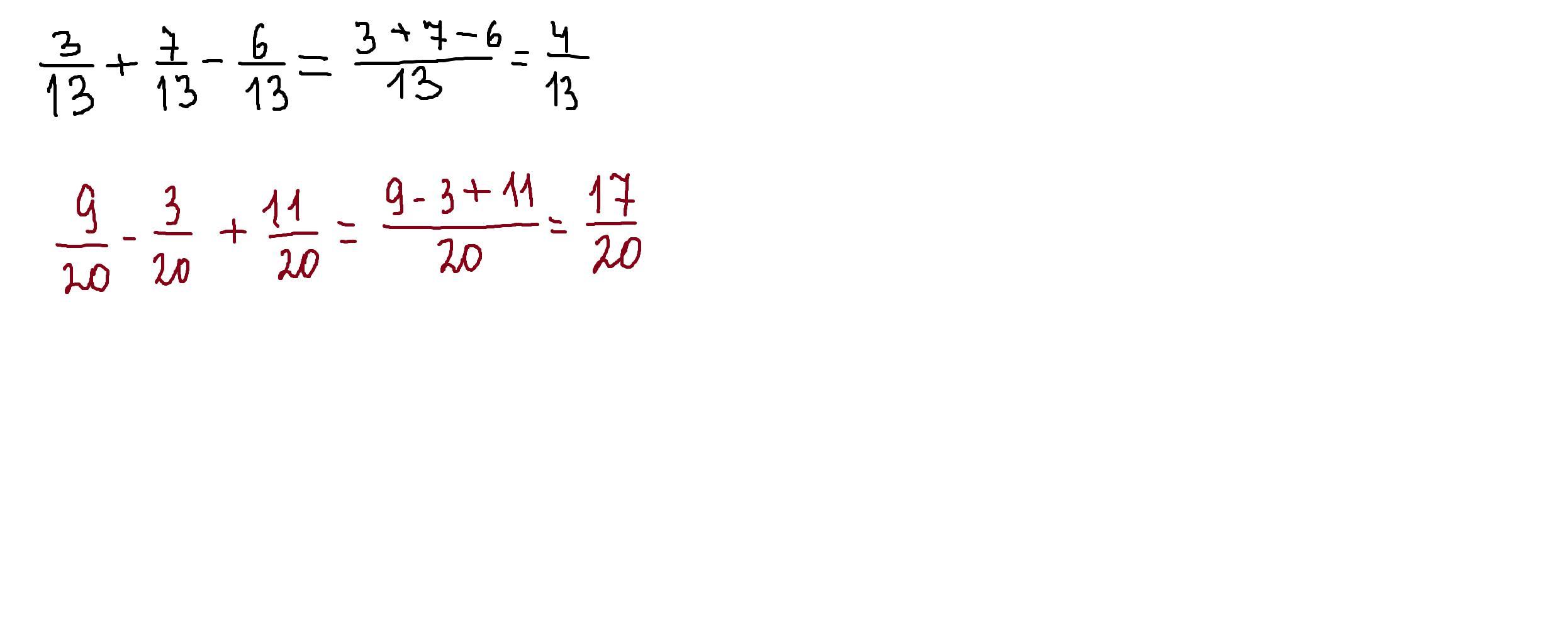 Выполните действие: а) 3/13+7/13-6/13; б) 9/20-3/20+11/20 И ПОЖАЛУЙСТА МОЖНО С ПОДРОБНЫМ РЕШЕНИЕМ !!!!!!!