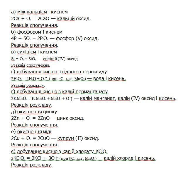 кисню з гідроген пероксиду; г) добування кисню з калі