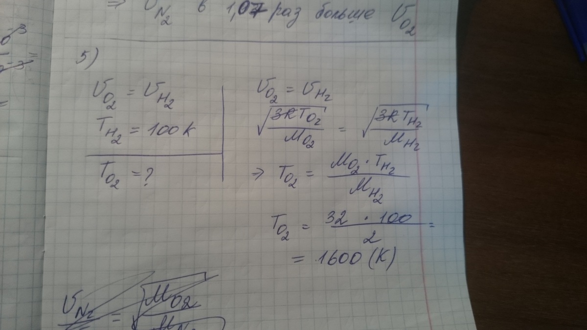 5.При какой температуре средняя квадратичная скорость молекул кислорода равна средней квадратичной скорости молекул водорода взятого при температуре 100К.