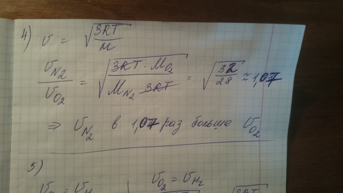 4.Во сколько раз отличается средняя квадратичная скорость молекул кислорода и азота в вашей классной комнате.