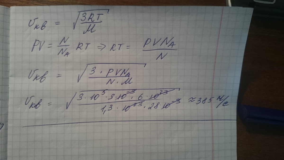 1.Оцените среднее квадратичную скорость молекул азота, если его плотность 100 кПа ,а в объёме 3 литра содержится 1,3*10^23 молекул (N).