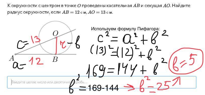 В задании была использована формула Пифагора: