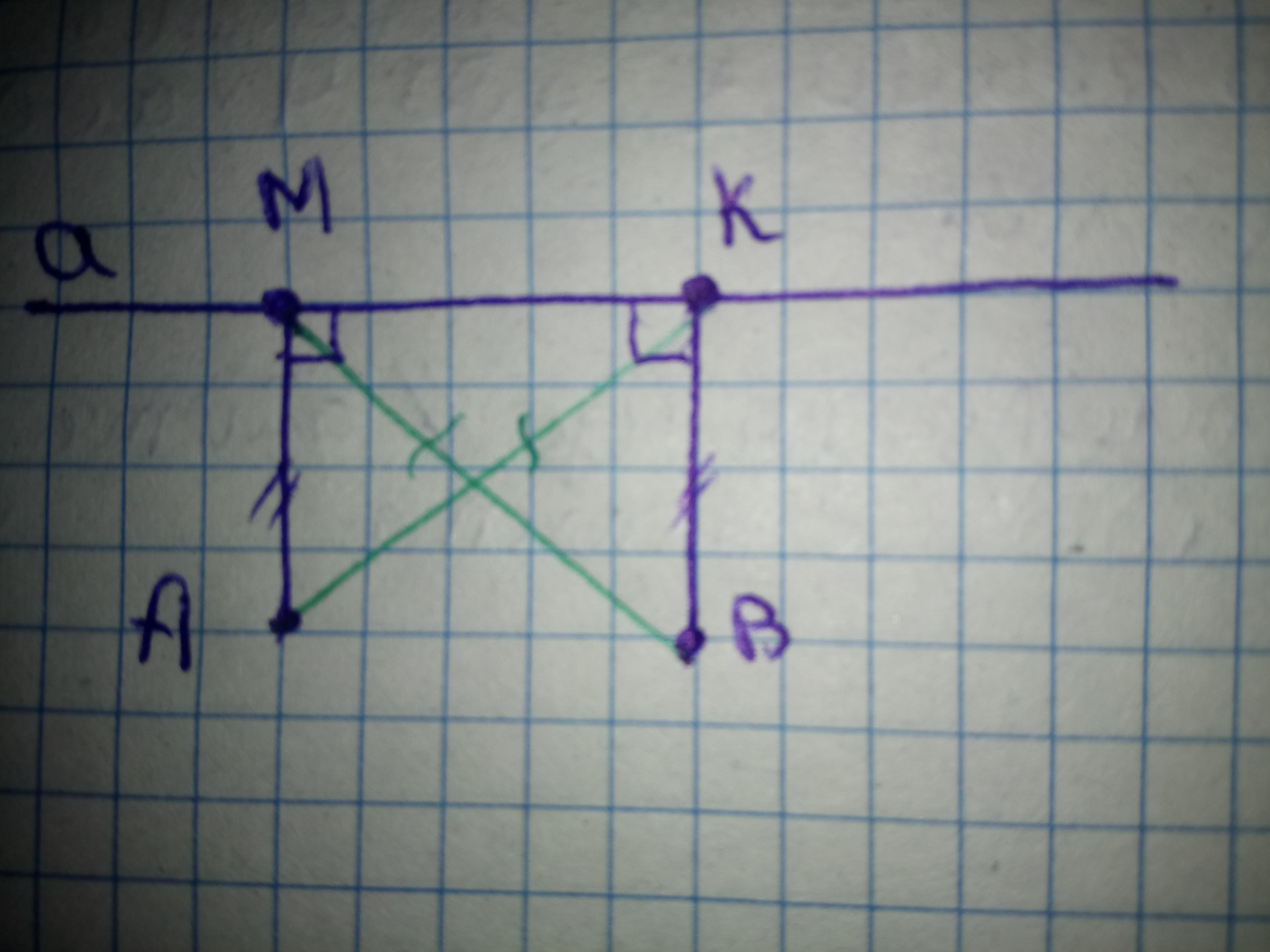 AM ┴ а; ВК ┴ а. AM = ВК. Довести: АК = ВМ.