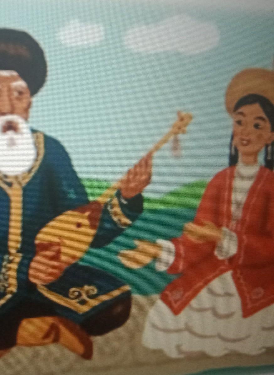 Атасы немересіне күй тартып бере жатыр. Немересіде атасының күйін тыңдап отыр. Атаси оған ән айтудыда үйретпекші. Өйткені немересі соны атасынан сұрады. Ата домбырада кү тартып отыр. Домбыра өте киелі аспап.