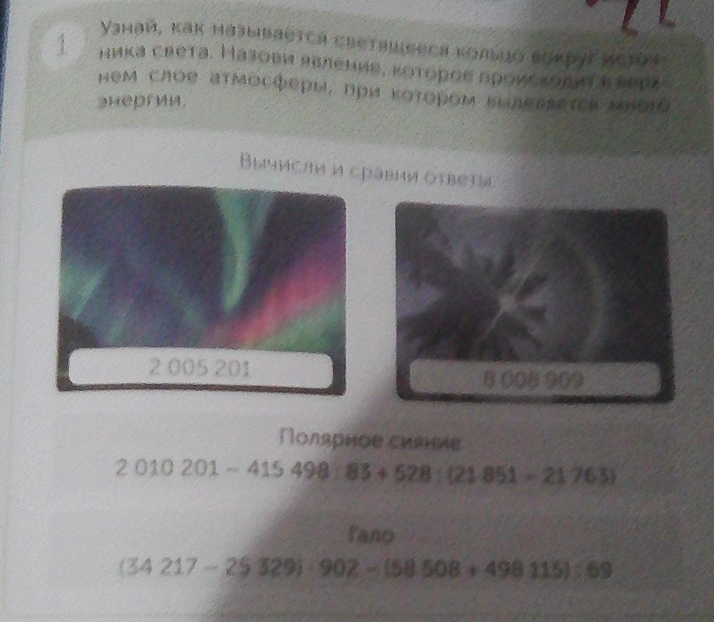 Узнай, как называется светящееся кольцо вокруг источника света. Назови явление, которое происходит в верхнем слое атмосферы, при котором выделяется много энергии.