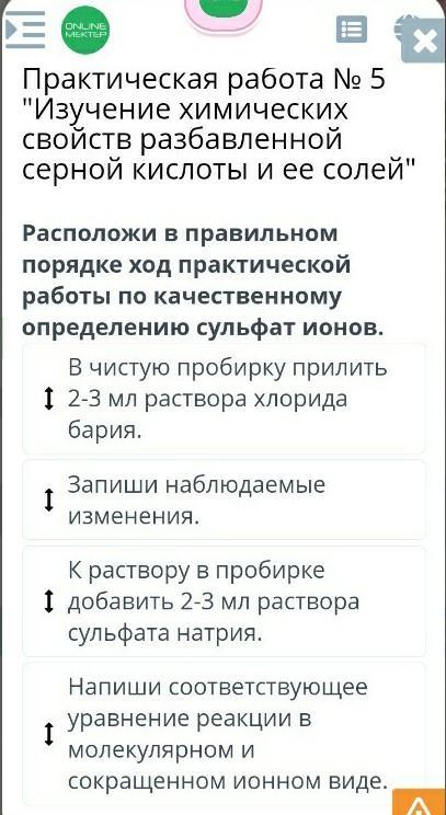 Расположи в правильном порядке ход практической работы по качественному определению сульфат ионов