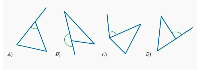 Правильный ответ - D). На рисунке "D" изображён треугольник со внешним углом.