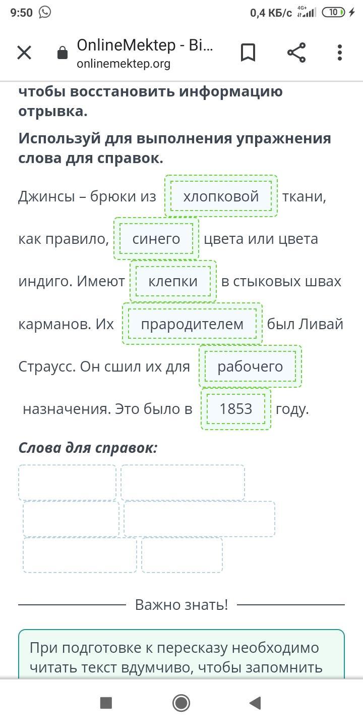 Вставь подходящие по смыслу слова, чтобы восстановить информацию отрывка