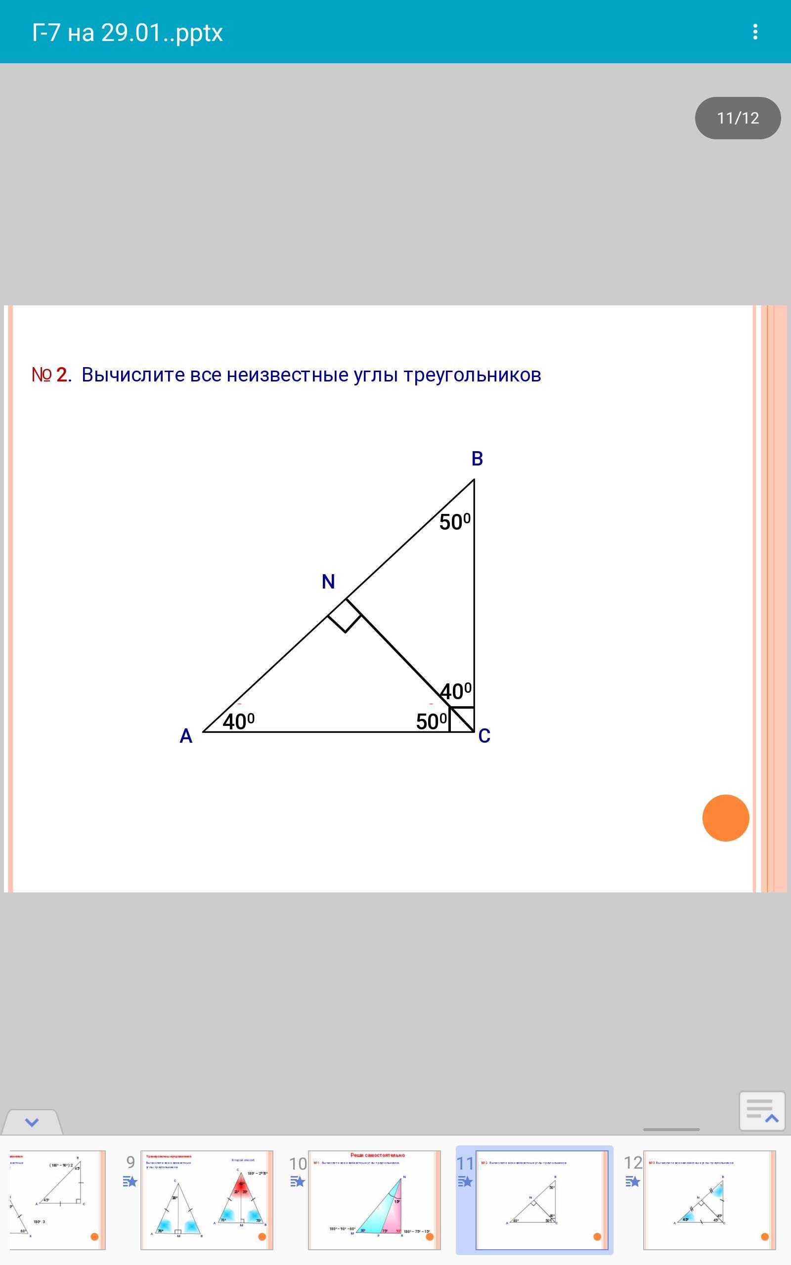 перпендикуляр проведен ровно от середины прямой к вершине, под углом 90 градусов => углы цна=цнб=90 градусов