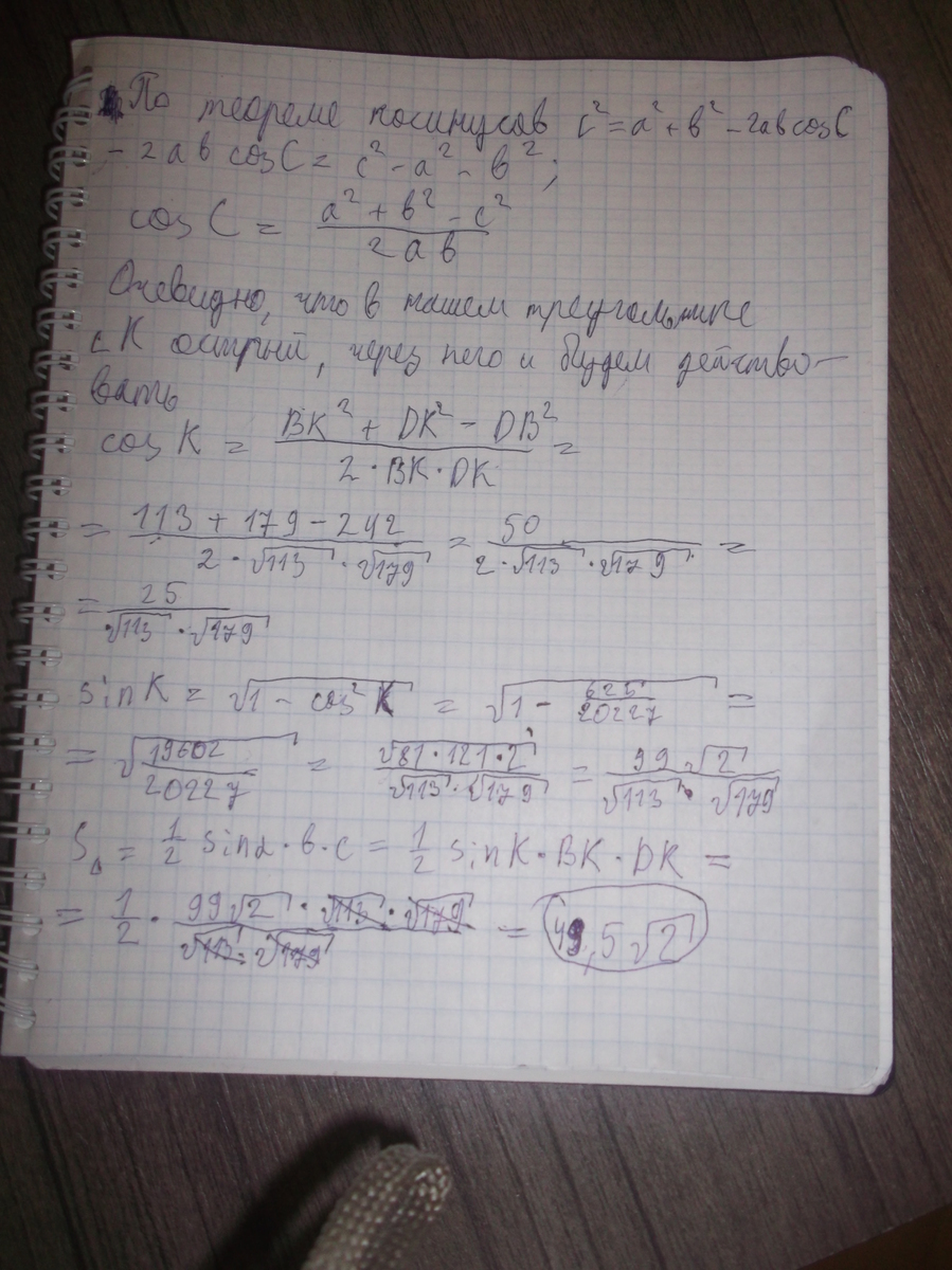 BK^2 = 7^2 + 8^2 = 49+64 = 113