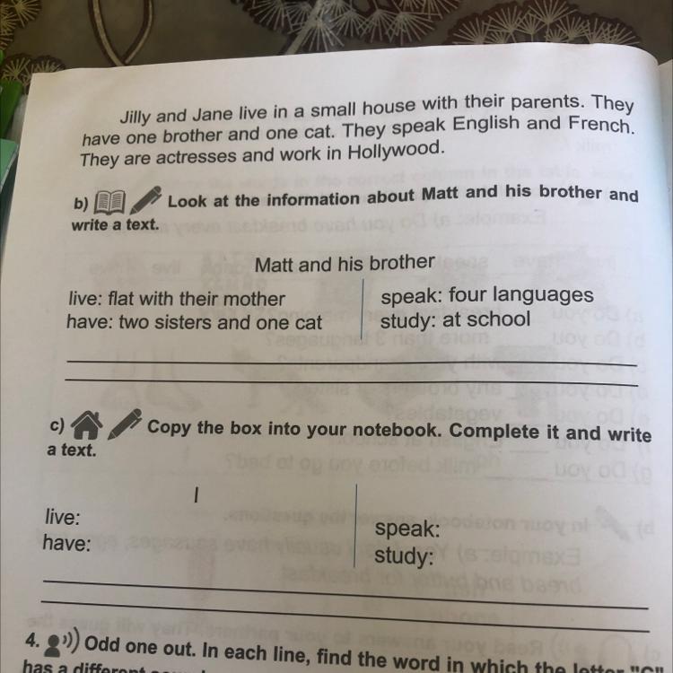 Matt and his brother live a flat with their mother. They have two sisters and one cat. Also, they speak four languages and study at school.