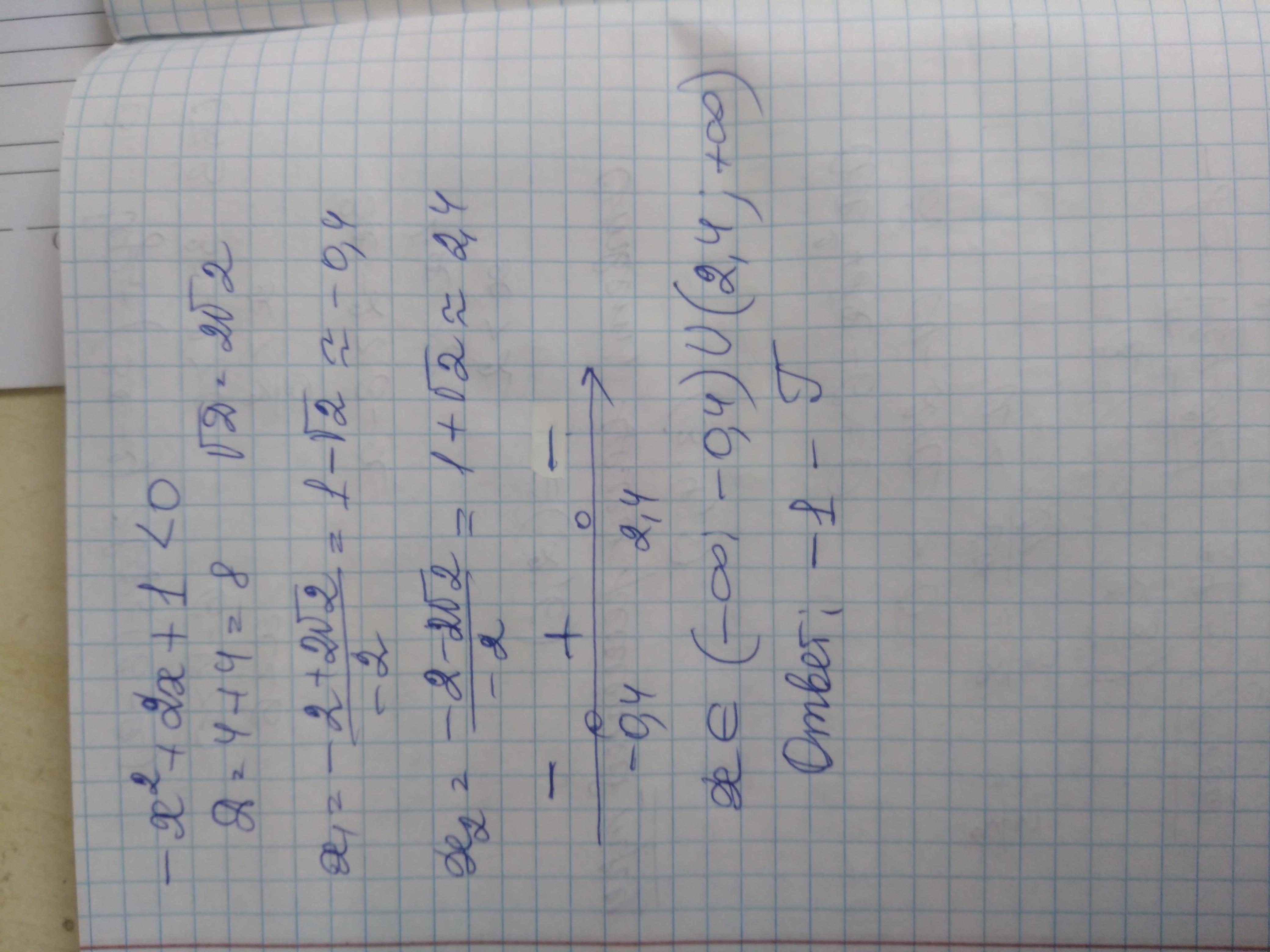 1. Укажіть число, що є розв'язком нерівності – х2 + 2x+1<0.