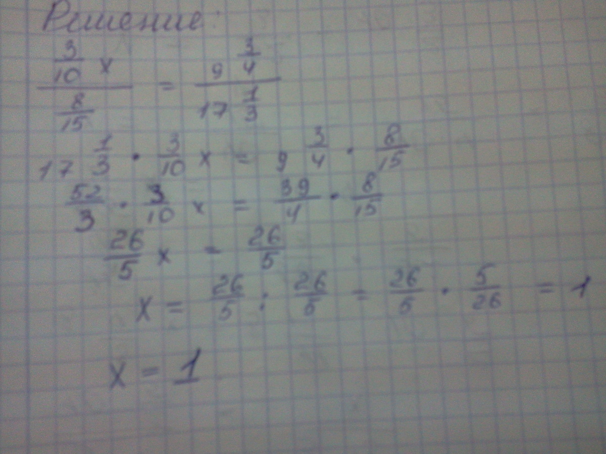 0,3х:8/15=9,75:17 1/3 . Это уравнение. Где палкой, это не деление, а так я пишу дробь, т.к., здесь нельзя писать дробью;(.