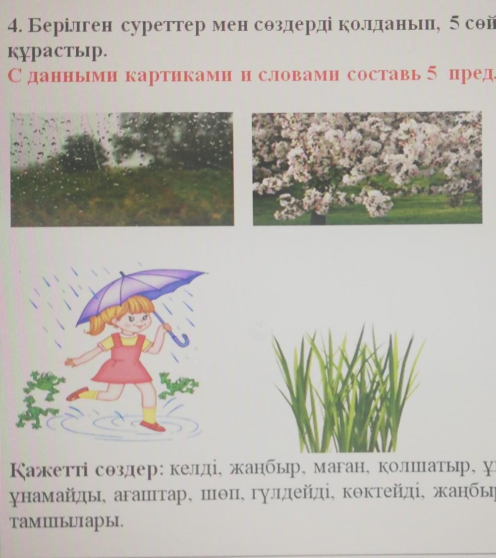 4. Берілген суреттер мен сөздерді қолданып, 5 сөйлем