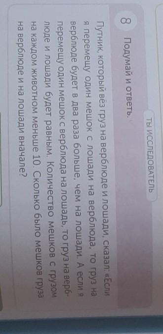 Может это будет ошибка но думаю у лошади было 1 а берблюда 2 простите но это может быть ощибка