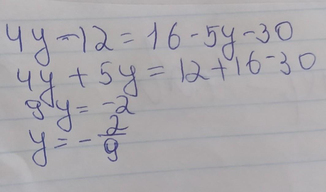 4y-12=16-5y-30