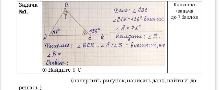 б)<С = 180°- <ВСК= 180°- 136°= 44°-смежные углы.