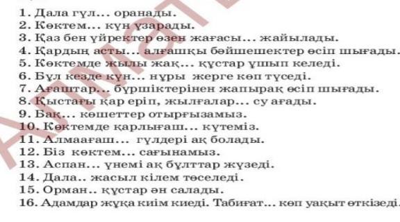 5.көктемде жылы жаққа құстар ұшып келеді.