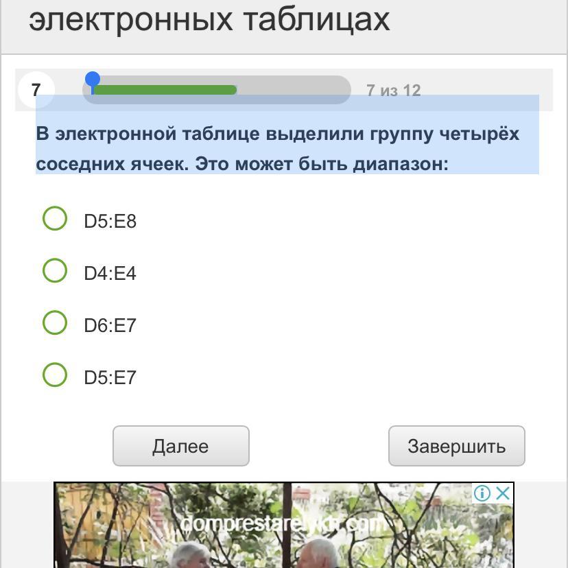 D и E две соседние ячейки в строку