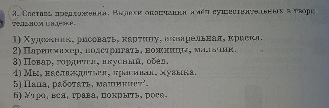 предложения. Выдели окончания имён существительных в твори- тельном падеже.