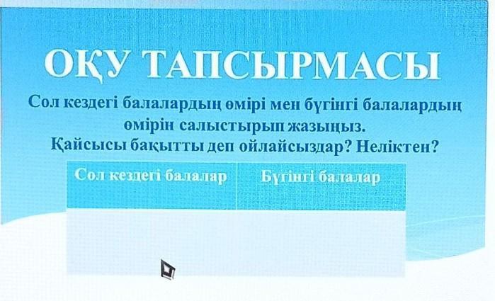 Ответ:Сол кездегі балалар:Олар телефонда отырмай кітаптарын оқыйтын болатын және де далаға шығып достарымен ойнап жүрген кезінде ата-бабамыз өлгенде оларға жылама деген әдетті еткен. Олар ата-аналарға көмектесетін.