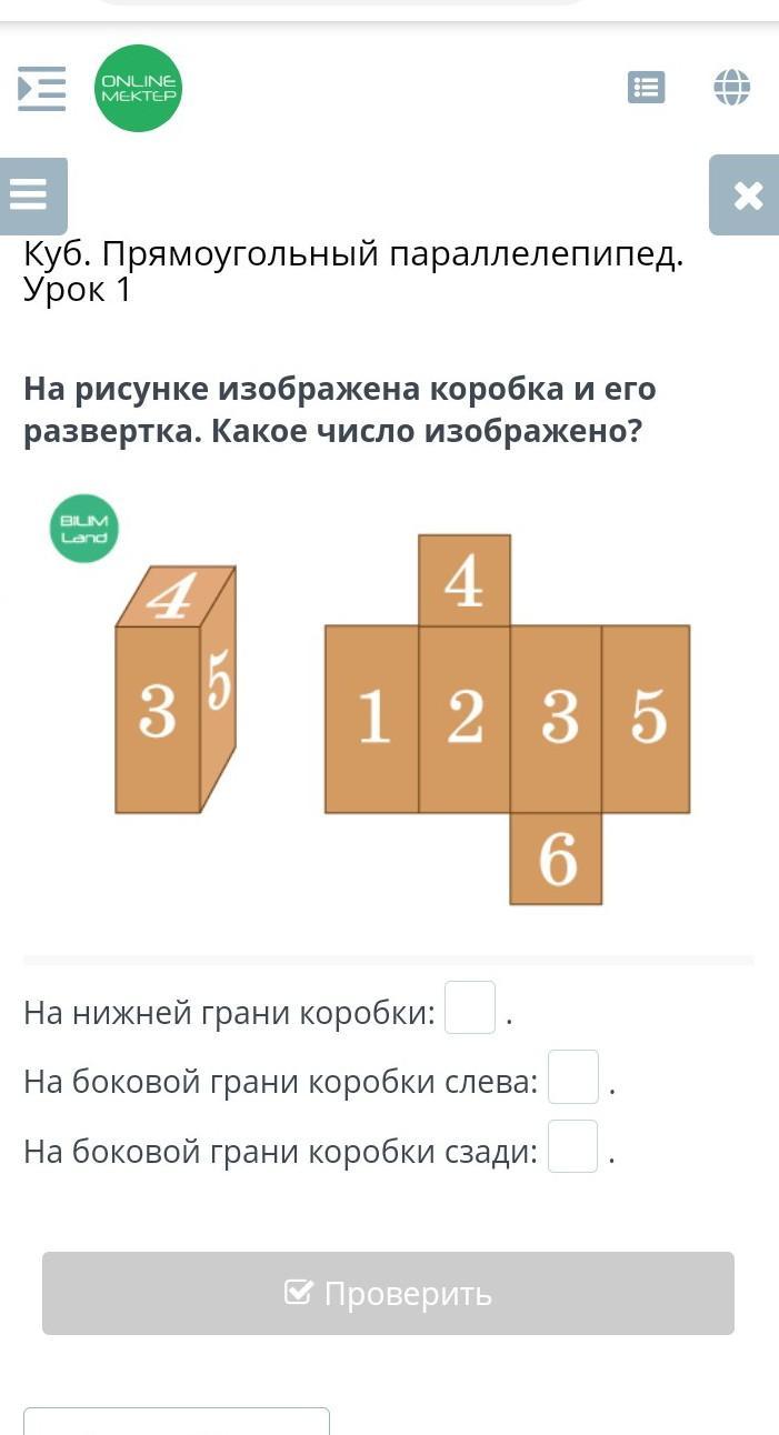 На рисунке изображена коробка и его развертка. Какое число изображено?