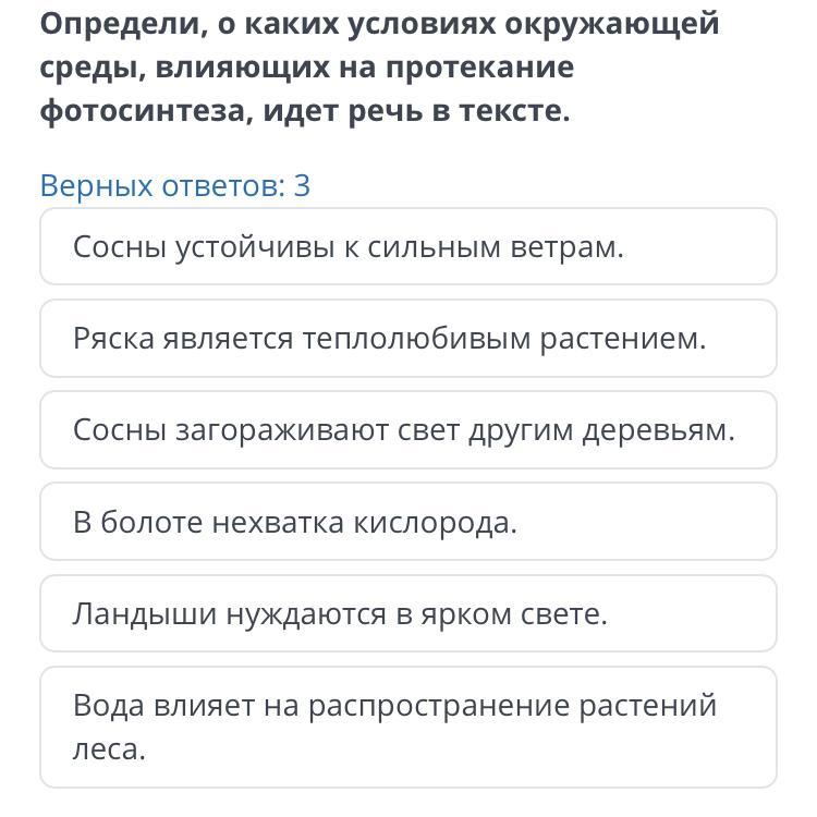 1) в болоте нехватка кислорода. 2) вода влияет на распространение растений леса. 3) сосны загораживают свет другим деревьям.