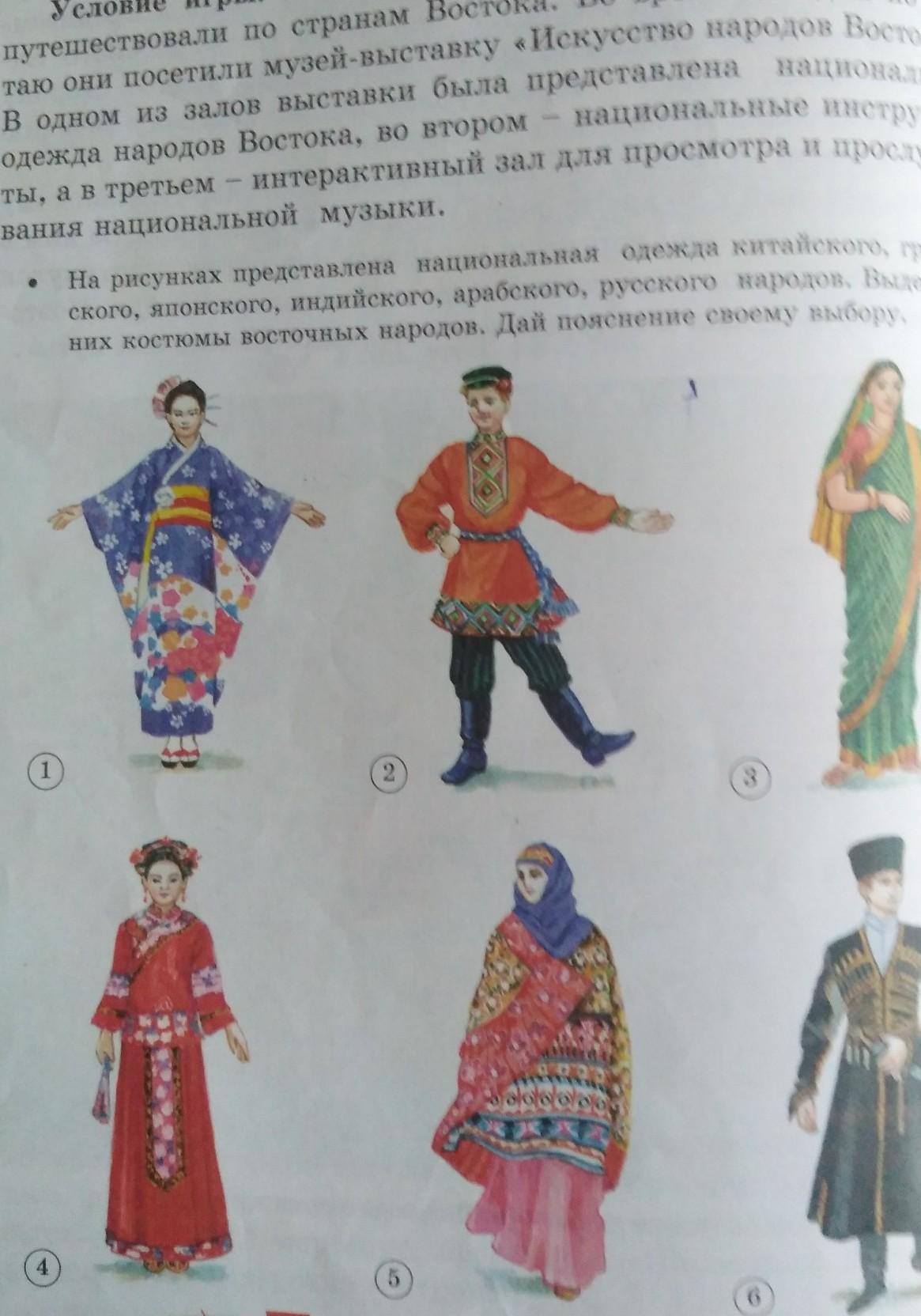 них костюмы восточных народов. Дай пояснение своему выбору.