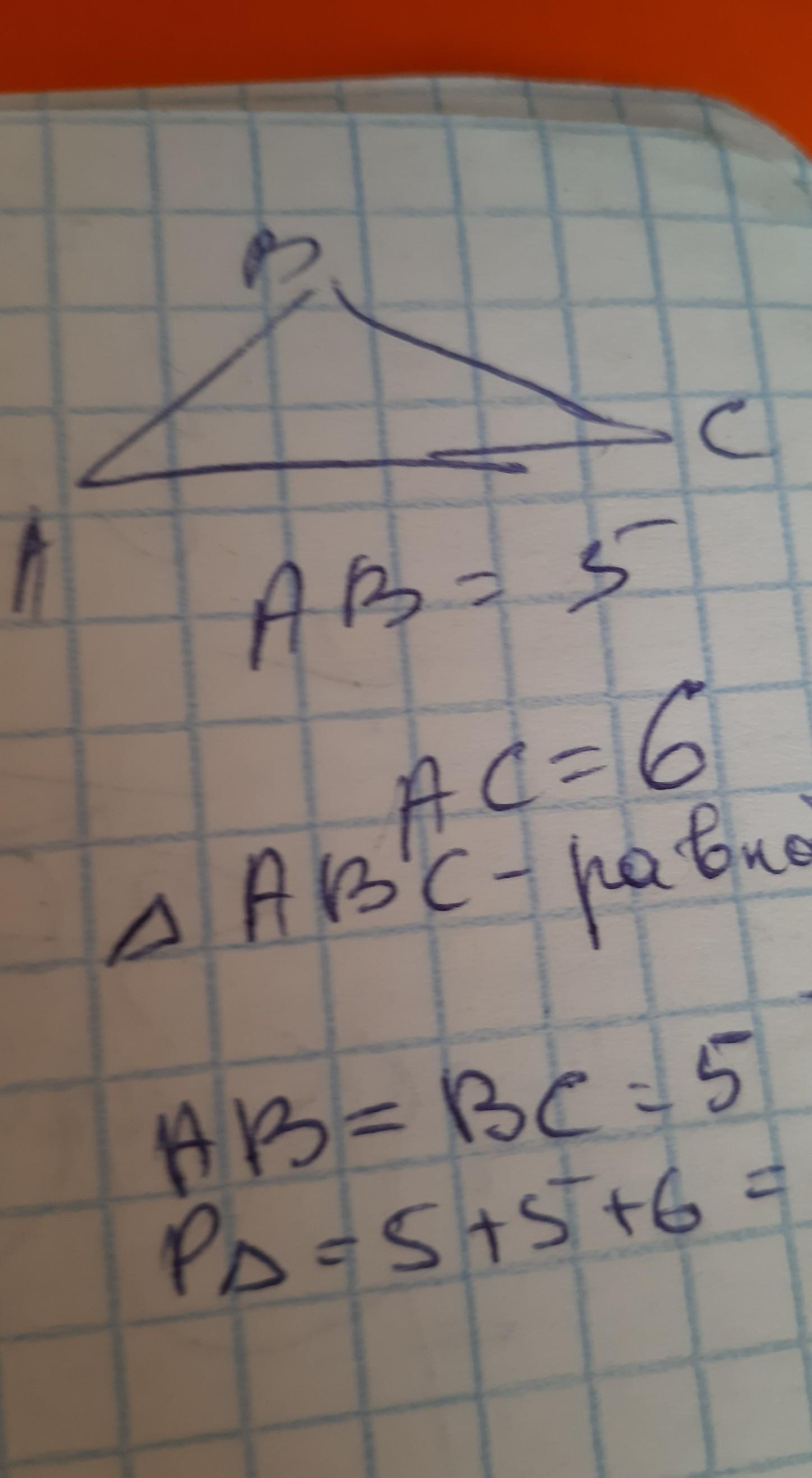 3. Боковая сторона равнобедренного треугольника равна 5, а основание равно 6. Найдите площадь треуголь