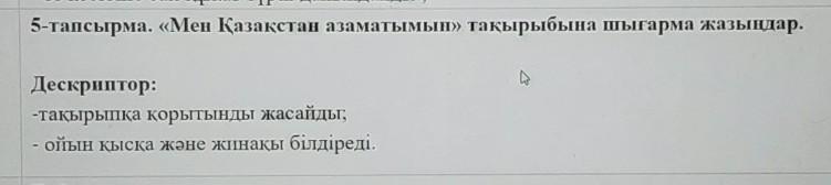 Туған Отан, туған жерім мен үшін бөлек әлем. Менің Отаным, кең байтақ жерім- Қазақстан. Ата-бабамыз ұрпақ үшін, біз үшін күресіп, осы жерді бізге аманат етіп қалдырған соң, елімнің азаматы ретінде мен жерімді әрқашан қорғауға, ол үшін күресуге дайынмын. Өз жеріңде нағыз батыр атанғанға не жетсін. Нағыз азамат елі үшін құрбан болудан қорықпайды. Көк туы желбіреген, тәуелсіздігі бар бейбіт елімді сүйемін. Осында туып өскеніміздің арқасында барлық жақсылықты, нағыз азамат болуды үйрендік.