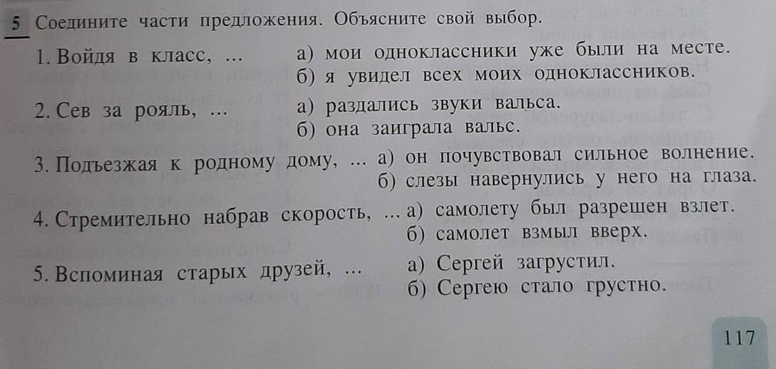 5. Вспоминая старых друзей,Сергей загрустил.объяснение выбора здесь одно на все предложения: выбран был именно такой-то вариант,потому что логически это звучит правильно.