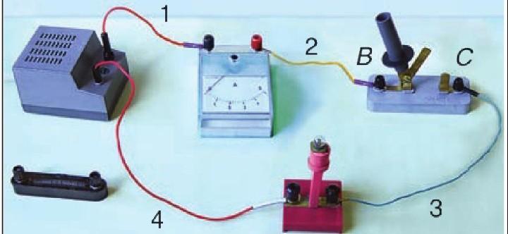 рассмотрите схему подключения лампы и напишите как изменится показания амперметра, если лампу поменять местами с ключом?