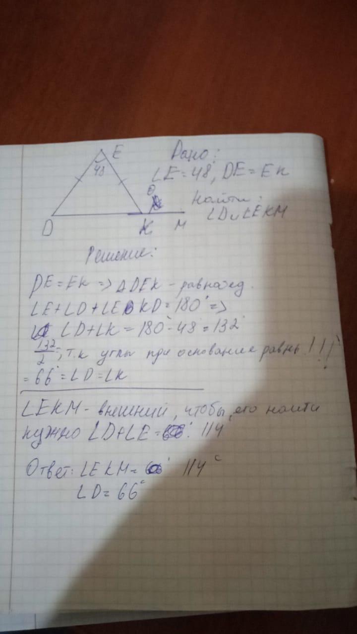 Внешний угол треугольника нужно находить по известной теореме: