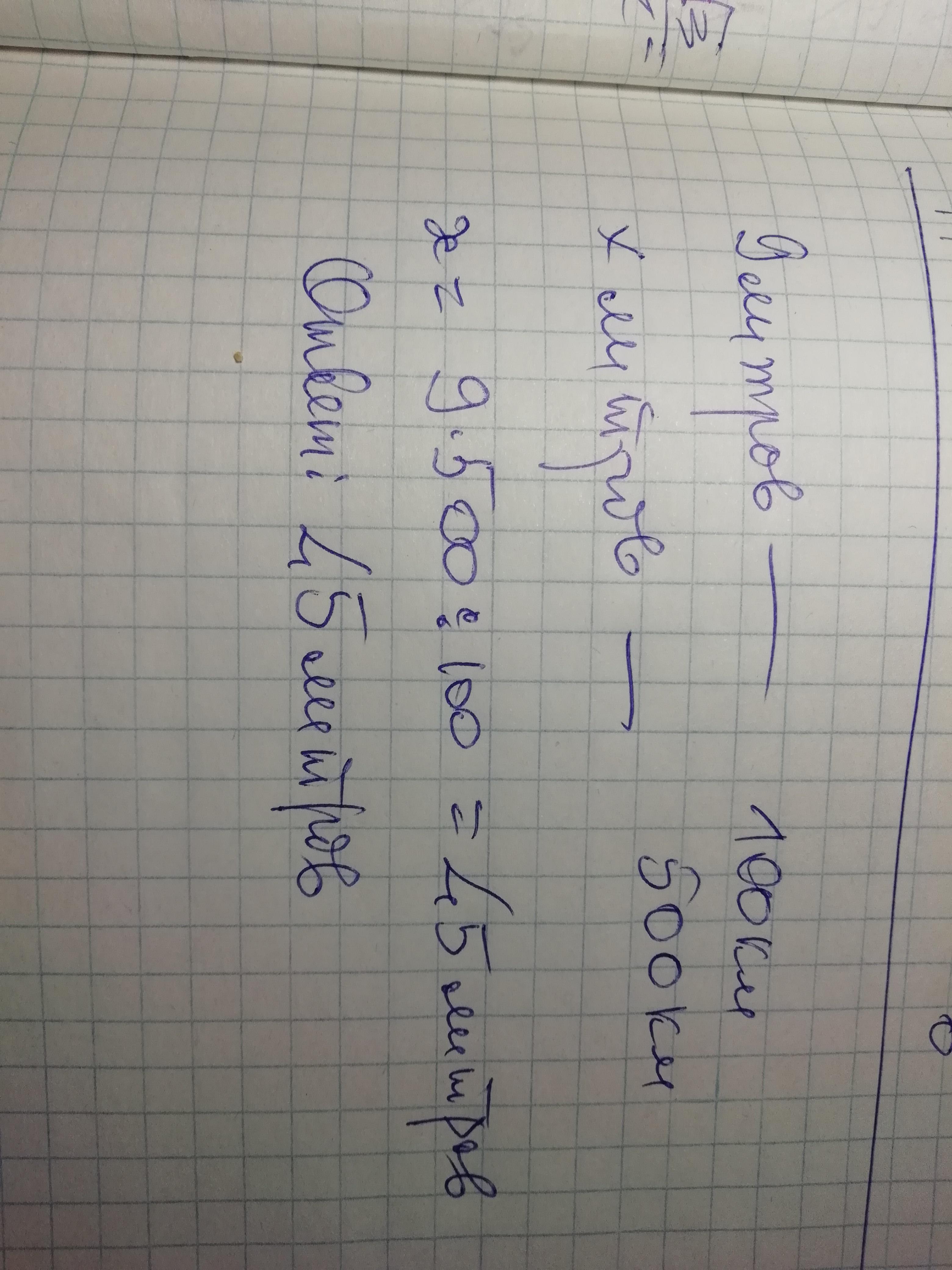 Для легкового автомобиля требуется 9 л бензина на 100 км пути. Сколько литров бензина потребуется на 500 км ?
