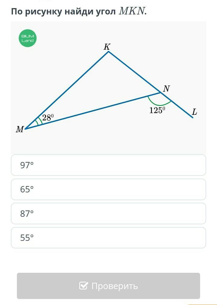 розгорнутий 180 і 180-125=55 це кут КНМ