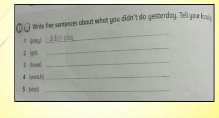 Write five sentences about what you didn,t do yesterday дам 15 баллл