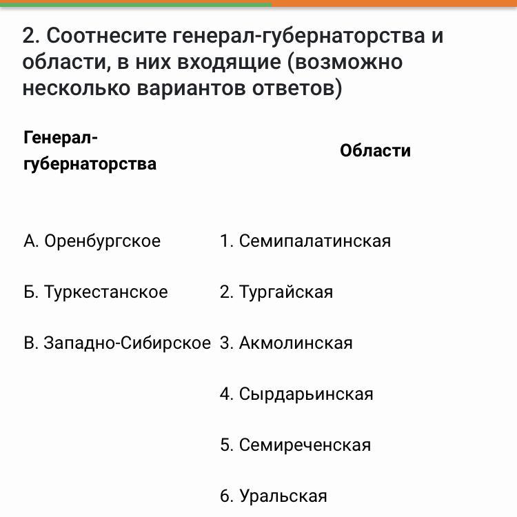 В. Заподно-Сибирское ー 1. Семипалатинская; 3. Акмолинская.