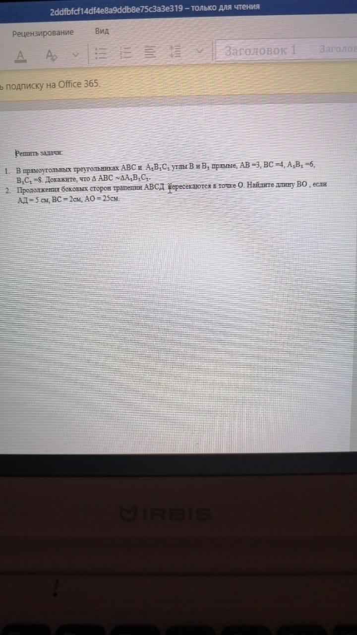 2) треугольники AOD и BOC подобны по трем углам: