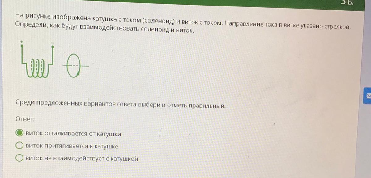 На рисунке изображена катушка с током и виток с током. Среди предложенных вариантов ответа выбери и отметь правильный.