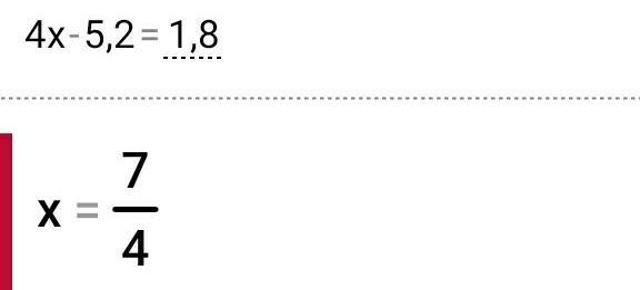 4х-5,2=1,8; 4х=1,8+5,2; 4х=7; х=1 3/4